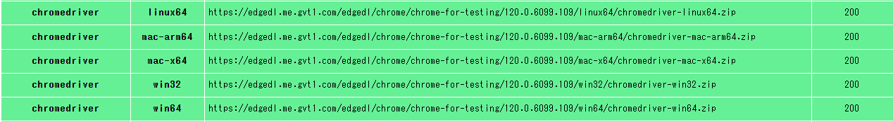 該当のChromeDriverのURLをコピーし、アクセスします。