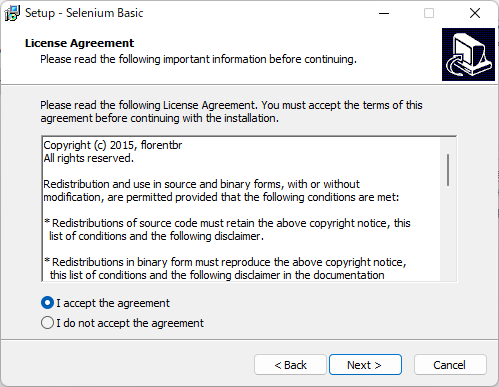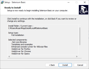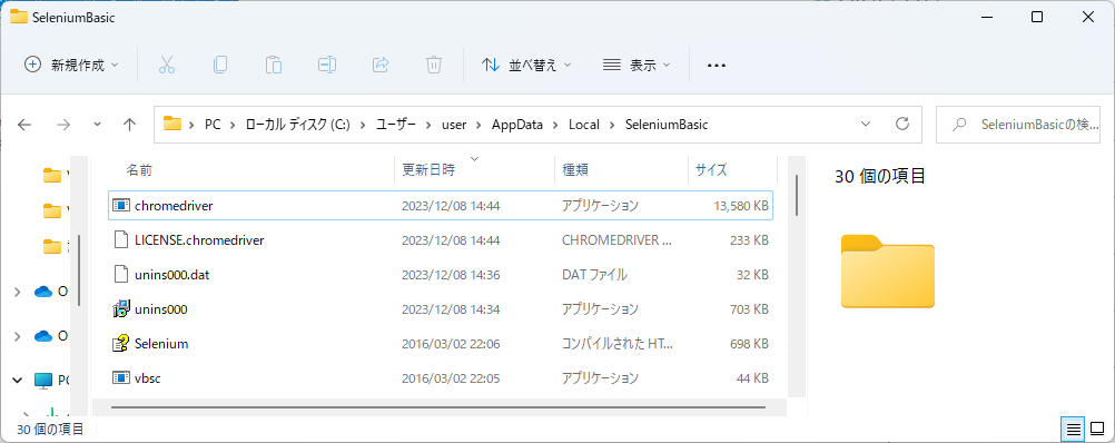 インストールされる場所は 「C:\Users\(ユーザー名\AppData\Local\SeleniumBasic」になります。