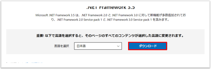 ダウンロードサイトからMicrosoft .NET Framework 3.5をダウンロードします。